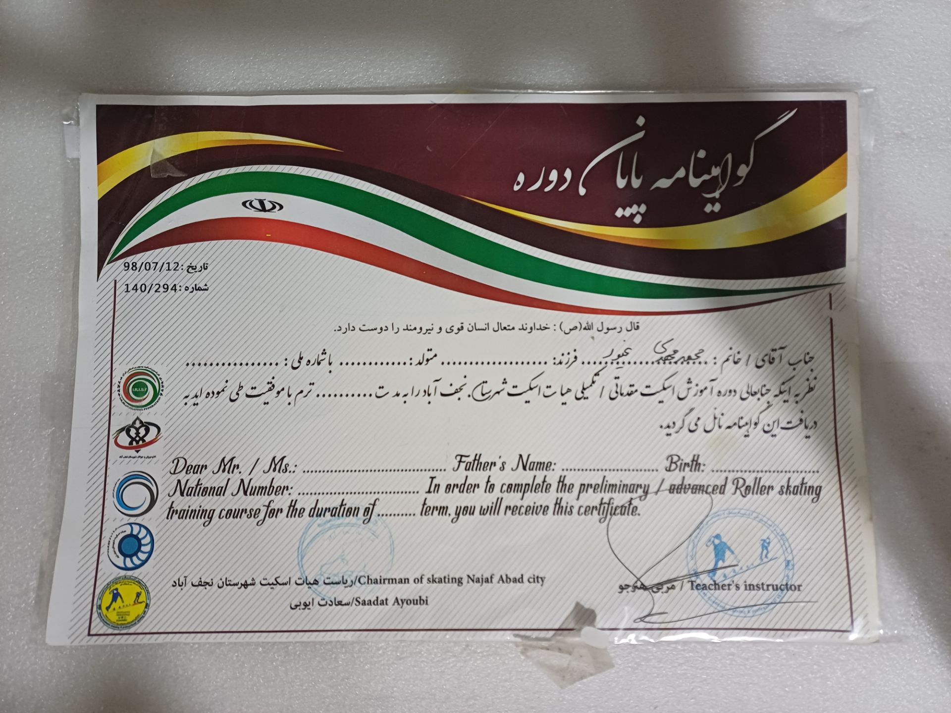5-دارای مجوز پایان دوره ی اموزشی کلاس اسکیت