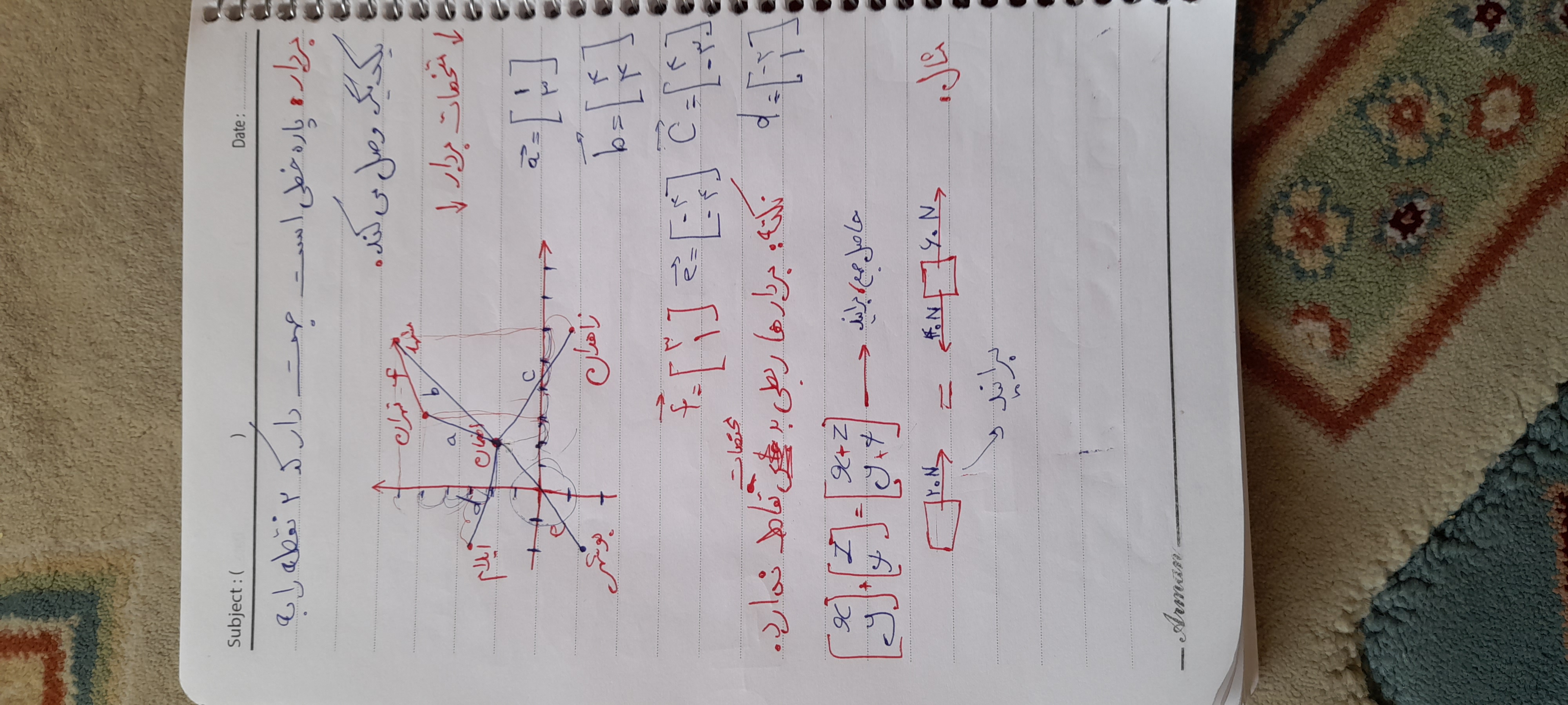 و بعد همون جوری که توی (((تصویر))) میبینید مختصات بردار ها را مشخص کردند.