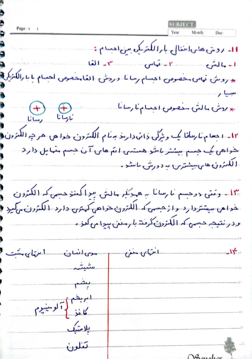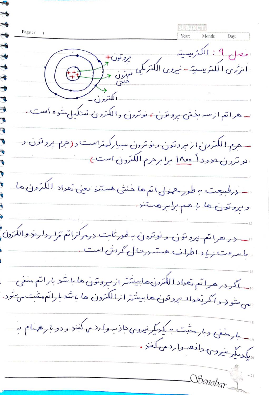 آقای عمو مهدی بعد از ورود به کلاس اول جواب آزمون های دو هفته پیش را دادند و از چند نفر درس پرسیده شد ، جزوه های چند نفر را هم چک کردند . بعد شروع به دادن ادامه ی فصل 9 کردند در ادامه جزو ارسال می گردد.